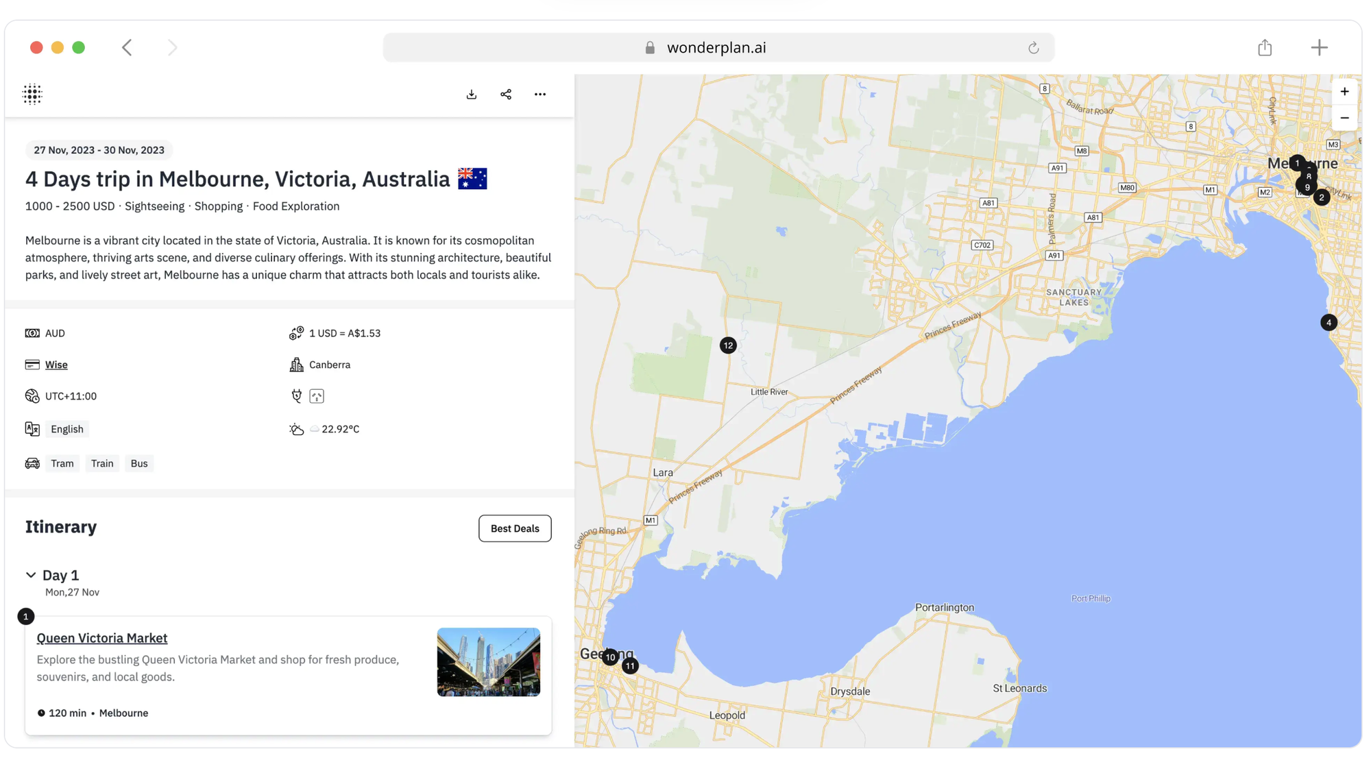 Wonderplan works well for travelers who want a quick structured itinerary without spending hours planning.