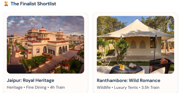 Instead of suggesting “top resorts,” SearchSpot analyzed 88 properties in Sawai Madhopur.